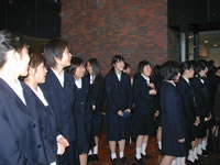| 演奏終了後は、出口でお客さんを見送るのがHWE流。その後、パート別(?)の記念撮影などで盛り上がります。これで卒業してゆく一人の女の子が「もう部活ができないと思うと...」と涙していたのが印象的でした。 | ||||