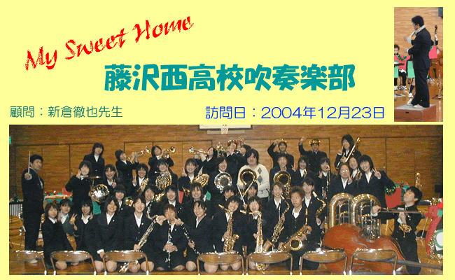 | ある意味で衝撃的なステージであった。 吹奏楽の演奏と言えば、ホールの舞台に上がってやるもの、という私の思い込みは会場に入った途端に打ち砕かれたのであった。 2004年の暮れも押し迫る12月23日(天皇誕生日)、藤沢の大庭市民センターに於いて藤沢西高校吹奏楽部『ウィンターコンサート』は開かれた。 しかし、まず、何故我々『部活.ネット』がこのコンサートに取材に来たのかをお伝えしておこう。 先月開かれた「湘南地区アンサンブルコンテスト」に取材に行き、得意の(?)自己採点とともに、本部経由の成績も発表したのをご記憶だろうか。 その際、藤沢西高校クラリネット5重奏が、本来は「銀賞」だったのに「銅賞」となっている(会場での発表は銀賞、ペーパーによる発表は銅賞になっていた)のを発見した、藤沢西高校吹奏楽部で実際にクラリネットを吹いていた女子部員(1年)からのメールがきっかけで、WEB版を訂正し、そこから始まった“メル友生活”から、ウィンターコンサートの存在を知り、ついには部活訪問記へと発展した次第なのであった。 というか、当「部活.ネット」の取材の根幹は、懸命に練習に励む生徒やそれを見守る先生をはじめとする大人たちを勇気づける、という点にあるので、「部活.ネット」らしい取材のきっかけではあったわけだ。 |
