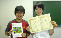 管理人「ありがとうございました。では部長さんに少しお話を聞かせて下さい。審査発表の時、舞台で泣いていましたね。」 山口部長「はい(笑)。とても嬉しくて。」