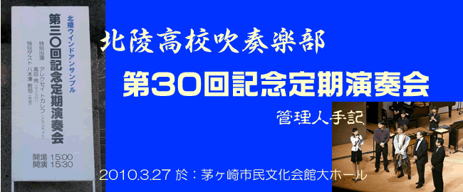やりきる。 これが30回という節目を迎えた北陵高校吹奏楽部(HWE)の定演での、彼の大きなテーマであったに相違ない。でなければ、この許容量を超えたプログラムはあり得ない。その点については、打楽器の指導者でこの定演でも「メトセラU」など3曲の指揮を執った土屋吉弘も同意見であった。プログラムを考える際には、熱さを排除することは当然の如く不可能だったのである。 そして、後ろ髪を引かれかねないファイナルステージに悔いを残すことなくやりきった。 私にはそう思えた。 そういった混沌の中から勇気を振り絞って「形も精神も残す」といった意味で、八木澤教司への作曲依頼があり、ラヴェルの『ボレロ』を最終楽曲として選択するという決断があったのだ。 つまりはそういうことだったのだ。私もそうしたことを勘案しつつ、この定演をやはり特別なものとして受け止め、心の準備をしていた。 演奏が始まる前、そんなことを考えてはいたのだが、実際に最終楽曲である『ボレロ』を聴いている途中から不意にこみ上げるものをこらえるのは難しくなっていた。 私が『ボレロ』をHWE定演で演奏して欲しいとリクエストしてから何年が経過したであろうか。 ところが、同じことを考えていた人物がもう一人いたのだ。 その人こそが丸山透であり、彼のフォーカスは2010年3月27日に合わせられていた、ということになる。 私が「部活ネット」というサイトを立ち上げた時、ひとつの希望を持っていた。それは“公教育と民間教育(私の軸足は塾講師である)による生徒のシェア”であり、なるべく多くの大人が子供の成長に関わるのが望ましいと考えていた。しかし、そうした想いを抱えつつ、実際にいろんな部活動を取材するうち、「もっと指導する大人も励ましたい」と考えるようになった。 現在の閉塞的な日本の状況を憂いて、或いは少子化による競争力低下を嘆いて、といった側面もあるが、陳腐ながら、要は資源らしい資源を持たない日本に於いて教育の持つ力は絶大である、ということなのだ。さらに、教育に比肩するほどクリエイティブなものはないと確信もしているから、子どもたちがたくさん集まる学校という場所で彼らに多大な影響力を持つ部活の顧問や指導者には期待もしているし、何とか少しでも支援したいという気持ちも持ち合わせているということなのだ。 丸山透は、私にその念を強く思わせた人であり、したがって心地よい緊張感を伴ってこの足掛け8年間お付き合いさせてもらった。しかも同じ1960年生まれだ。その彼が北陵での最後のタクトを振る、というシチュエーションだけでも心の琴線に触れるに十分な上、その彼に導かれて、高校生たちが弦楽器のない中で『ボレロ』を懸命に演奏しているのである。 私はステージのほぼ正面、1階の中ほどに陣取っていたのだが、演奏の開始時、スネアの超弱音の出所がよく見えなかったため、「この役は高校生ではあまりに難儀なのでリズムマシンで出すことにしたのかな?」と思ったほどだった。 失礼しました。 音の主は小柄な1年生(新2年)・高橋彩菜さんであった。 そのリズムキープ力やダイナミクスの使い方は実に素晴らしく、最後まで演奏全体を支え続けるものであった。喝采! また、『ボレロ』にチャレンジする勇気と、実際に曲を解釈し、演奏できるだけの力を身につけたチーム北陵ウィンドアンサンブルも絶賛ものであった。抑えて演奏すべきところを抑えるだけの思慮と、リミッターを振り切らんばかりの熱情を併せ持ったバンドとして、私の記憶に刻まれるに違いない。 ありがとう。 まだ、振り返るには早い、よね。今度はまた違うシチュエーションで会いましょう。何しろ、熱き男・丸山もHWEも“希望”を携えて新たな一歩を踏み出したばかりなんだし、ね。 |