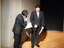 | 左)終演後、各校代表が客席に言葉を贈る 中)司会の中田稔先生(茅ヶ崎)と北陵の新倉徹也先生 右)鶴嶺の渡邊良子先生 | |