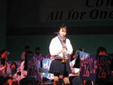 | 第二部は学生指揮により、演歌あり、ポピュラーあり、ソロあり、踊りあり、歴代トレーナーのファッションショーあり、珍妙な司会(伊藤壮二朗さん)ありで盛り上がりました。学生指揮は石川祐美さんと森暁菜さん。照明による演出も効果的でした。 | ||