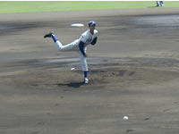 | さて、寒川高校のサヨナラ勝ちをテレビで観てから平塚球場に出掛けたため、到着した時には既に、西浜対麻溝台の試合が始まっていた。 西浜の水野崇裕くんは、寒川の永山くん同様、昨夏からのエース。 (しかも、同じ円蔵中学出身だ) 初戦ということもあって、やや緊張は見られたものの、要所を締め、5回までは麻溝台をノーヒットに押さえ込んでいた。フォアボールはいくつかあったが、まず安心して見ていられる内容であった。 |