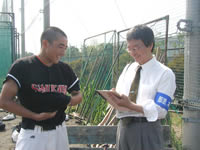 | Q:先生が野球部の部長を引き受けられた直接のきっかけは何だったのですか? A:現3年生を1年生の時から授業で見ている、ということと、たまたま僕が水野の担任で、彼の活躍を見守ろうということで引き受けました。 Q:技術指導できない、ということにハンデは感じますか? A:ええ。それはもどかしいですよ。しかし、素人が口出しすることは出来ませんからね。 Q:新しい監督さんはいかがですか? A:練習でも試合でも、ひじょうにソフトですね。怒っているのを見たことがありません。まあ、それが今の高校生の気質に合っているのかもしれませんね。 Q:部員たちに伝えたいことがあればお願いします。 A:彼らは一生懸命、練習にも時間を割いていますから、結果に繋がってもらいたい、ということと、野球で培ったことを生かして野球以外でも活躍してもらいたい、ということですね。 Q:担任をされている水野くんはプロ志向ということですが、先生からはどのように映りますか? A:まあ、幾分茅高の佐野くんは意識しているようですね。水野にも大学からは誘いが来ていますから、そこで活躍してからでもいいのでは、と思います。 Q:ありがとうございました。 西浜高校に来年、野球を指導できる先生が来るかどうか、勿論現段階では未定である。これは西浜だけの問題ではなく、公立高校全体の問題として議論されるべきであろうが、そのことについては、また別の機会にお話したい。 とりあえず、今は、まず彼らが初戦を突破し、さらに強豪相手にどこまで戦えるのかを見守りたいと思う。 |