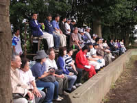 | 下段左)鶴嶺・小松監督 中)北陵・松島監督 右)観客も結構いたりする 試合は乱打戦となり、最終スコアは北陵15−8鶴嶺 |