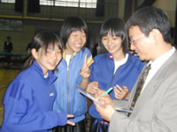 | Q:聞きにくいのですが、今日の試合については? A:負けたわけですから、気分がスッキリ、ということはありませんが、少なくとも、これまでやってきたことは出せましたから、悔いはありません。彼女たちの力は出たと思います。 Q:タイムアウトの際、かなり激しい口調で、キャプテンに何か話されていましたが、あれは何を言っていたのですか?差し支えなければ教えて下さい。 A:まあ、相手に対して自分たちが勝っていることを徹底してやろう、ということを指示したわけです。具体的に何を頑張るのか、ということですね。 Q:現チームのよかった点というのはどこになりますか? A:自信を持って、人の前でプレーできるチームだったということですね。諦めず、我がままにならず、全力を尽くすチームであったことは誇っていいかと思います。 Q:3年生の子たちに、何か贈る言葉をお願いします。 A:彼女たちは2年生の時から、私が見るようになったわけですが、片山を中心にして、一人の退部者も出さずについてきてくれたことには感謝しています。年下ではありますが、彼女たちのことを尊敬しています。いろいろとこちらも学ばせてもらいました。 Q:これから、まだ男子の試合がありますし、女子の新チームのことなどで頭がいっぱいでしょうね。 A:そうですね。男子は間違いなく女子よりも潜在能力はありますから、勝ち進むこともあると思いますが、私自身の気持ちの切り替えが出来るかどうかにも懸かっていますね。 (編集・注 男子は激戦を勝ち抜き、見事ベスト8にまで進出!) Q:では、また鶴北戦で新チームとお会いできることを楽しみにしていますね。 A:ええ。是非とも、継続して見てやって下さい。お願いします。 Q:勿論です。 最後は握手をして別れたのだが、彼の手には力がこめられていた。私は重度の手首腱鞘炎なので、「あまり強く握らないでね」と心の中で呟いてみたが、遅かった...。 また、取材に行きますね。 |