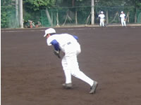 ![]() 前日の練習で左手人差し指を亜脱臼した主砲・坪井くん。大会までには十分完治する見込み ![]() “気合投法”のエース水口くん。水戸商相手に完投勝ちは自信になったことだろう |
