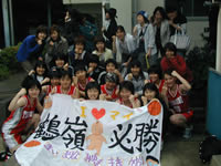 | A:ファールが恐いですね。実際に、試合で5ファウルで退場者が出たことがあって、交替メンバーがいなくなったこともあります。 Q:それはキツイね。他に何か心配な点はあるかな? A:自分が病気などで練習を休まなければならない時は、却って心配になります。家にいても、何だか練習のことが気になってしまって。 Q:今後、女子バスケ部をどうしてゆきたいですか? A:とにかく、これまで公式戦で一度も勝ったことがないので、公式戦で1勝挙げるために頑張りたいです。あと、新入生に入部してもらえるように勧誘もしっかりやりたいですね。 どうもありがとうございました。辛いこともあるだけろうけど、是非頑張って下さいね。応援しています。 |